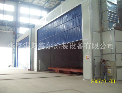 10、噴砂(丸)房室體采用聚苯乙烯發泡塑料夾心彩板房組成,具有消音功能,美觀、堅固、密閉。