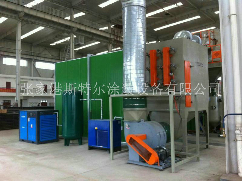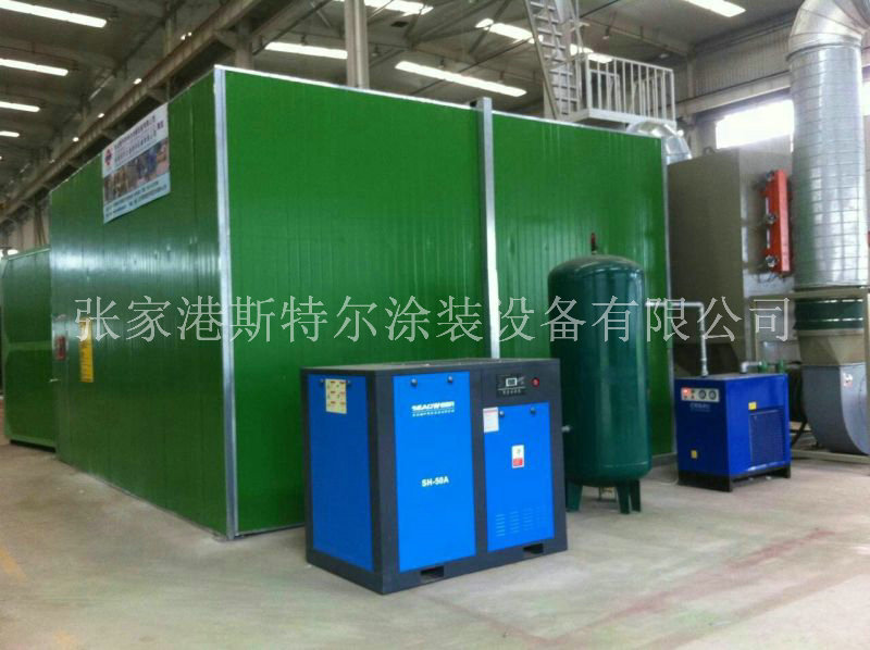 1、噴砂房室體:噴砂房體采用100mm方管做基本框架,內部采用25×40方管做內部支撐,外面采用50mm厚彩鋼夾心板制造,外形美觀、安裝便捷、防腐耐用;具有良好的隔音及保溫隔熱功能,同時遷移和改造也非常方便。