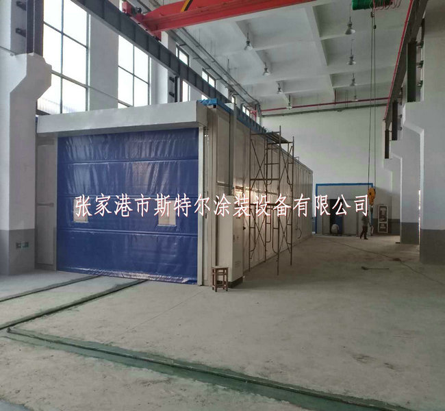 噴鋅房尺寸16X5.8X3.5m,墻(qiang)面選(xuan)擇10#方管是(shi)骨架,嵌入(ru)式(shi)75mm巖(yan)棉夾心板。進戶門為電動(dong)式(shi)增加(jia)式(shi),未端使(shi)用顆粒劑物過濾清潔墻(qiang)。